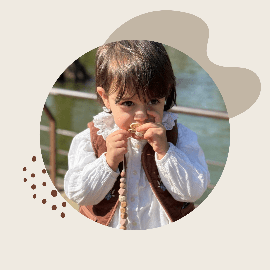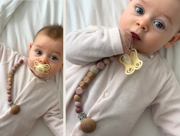 Chaque porte-tétine est fait sur-mesure, il est unique, alliant style et praticité.
