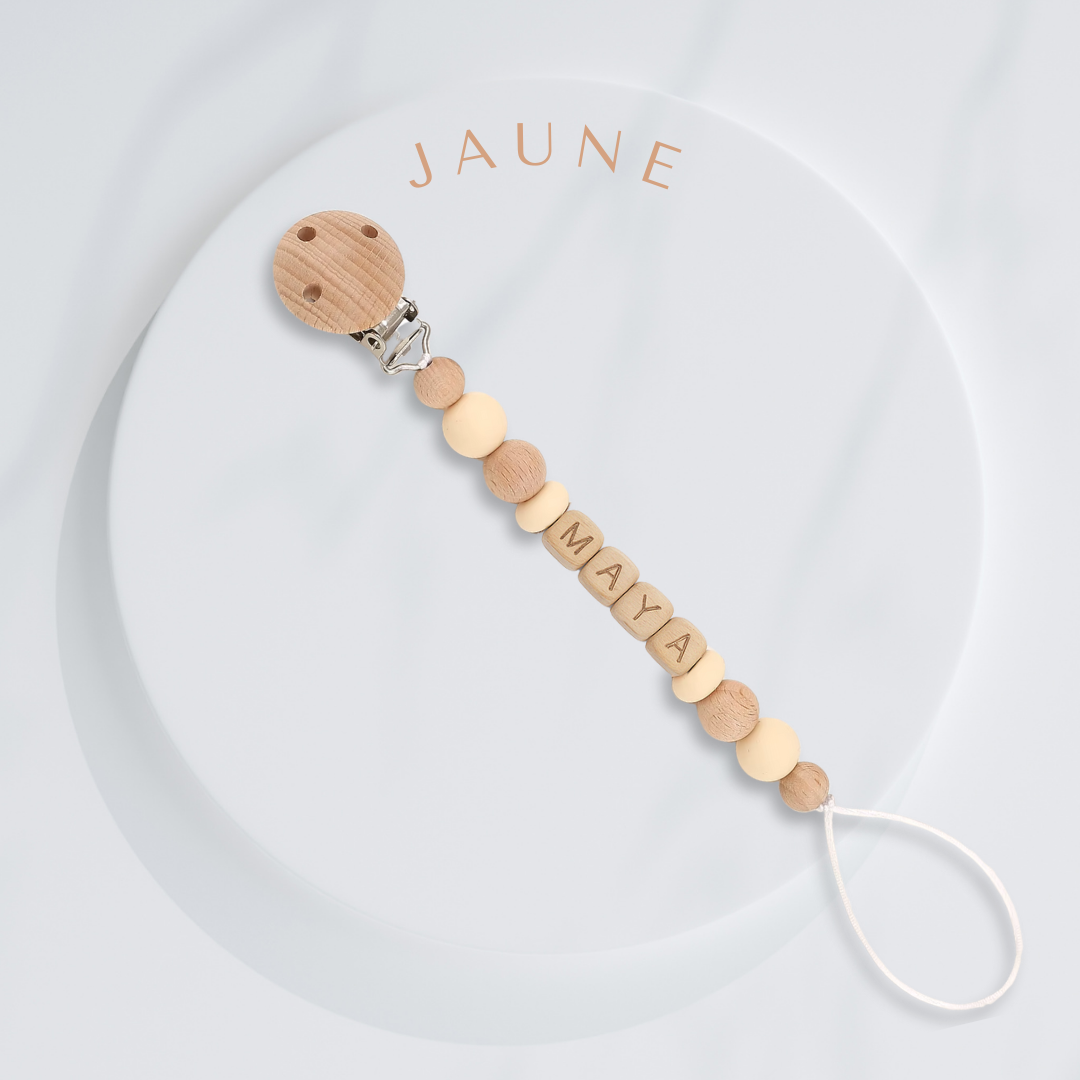 Pensé avec soin pour le bien-être de votre bébé, notre attache-tétine est fabriqué avec des matériaux de qualité, alliant bois de hêtre et silicone.
