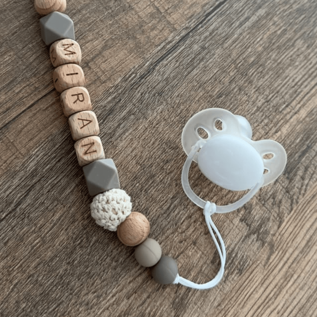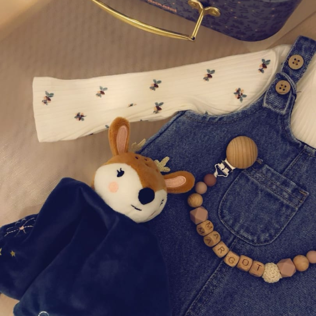 Offrir une attache-tétine personnalisée à bébé, c’est aussi simplifier la vie des parents : plus besoin de chercher ou ramasser la tétine sans cesse, elle reste toujours à portée de main.